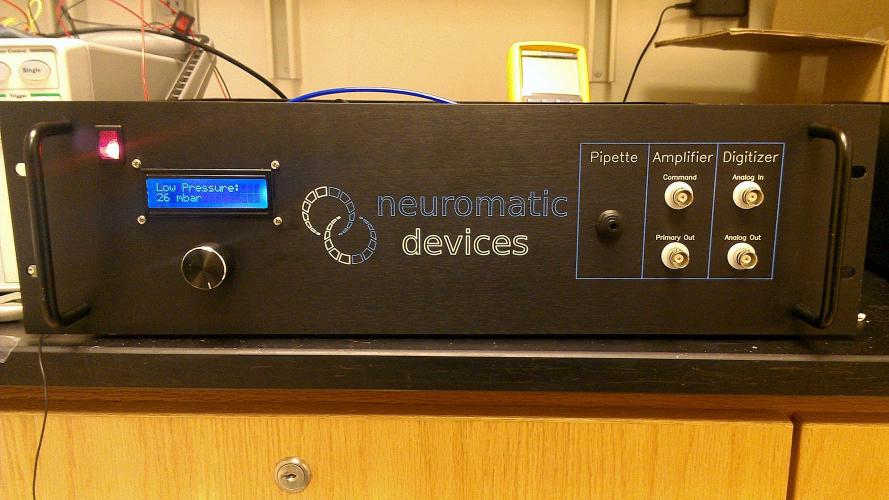 Different stages of the automation routine require different pressures (positive, low suction and high suction) at the pipette tip. The control box is responsible for setting these three pressures and switching between them.